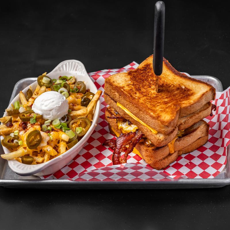 Cheddar Cheese, Jalapeno Bacon and TG Hickory Sauce